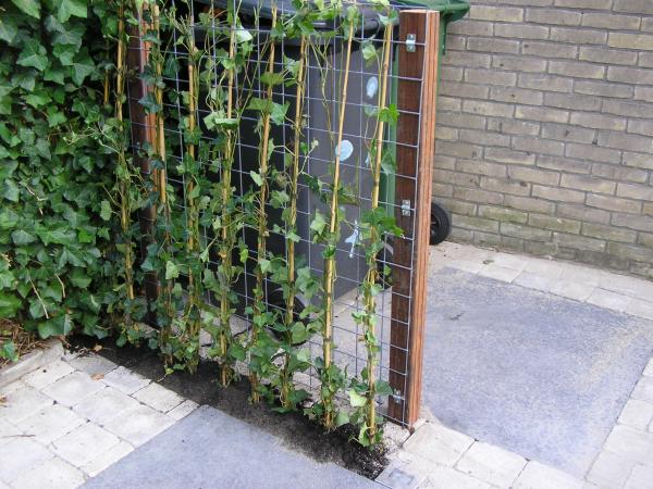 Ook hebben we om de vuilbakken weg te werken een raster geplaatst waar achter